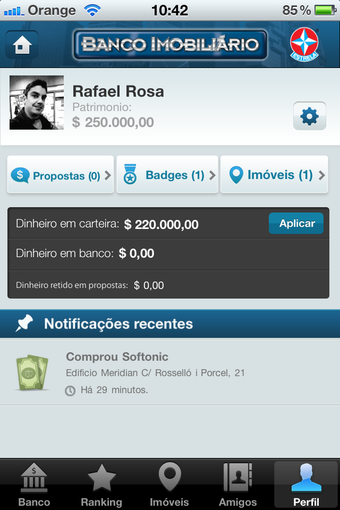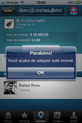 Banco Imobiliário em sua versão digital para iPhone. Muito mais social e interativo que a versão de tabuleiro, no Banco Imobiliário Geolocalizado você compra endereços reais e joga com pessoas do mundo inteiro.